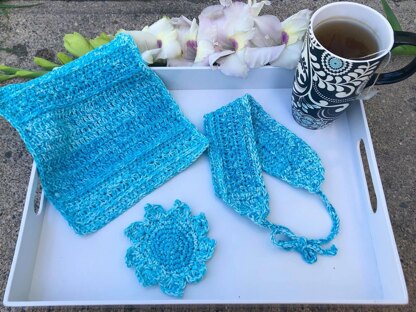 Is the final piece of the pack, a spa cloth that is both pretty and functional in your skincare routine.