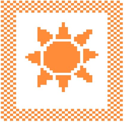 Hand-designed sun dishcloth pattern. All of my patterns are free-drawn and converted to a pattern on knitting graph paper. I never use knitting pattern creation software to design my patterns. One skein of sugar n cream yarn on size 4 (US) needles is used to create each dishcloth.