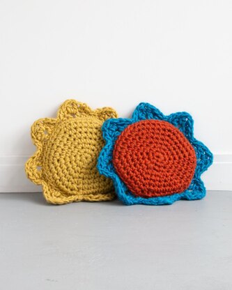 Quickly crochet a set of adorable, summery home accessories with these sun and flower-inspired throw pillows!