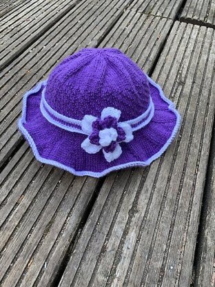 Ladies sun hat knitting pattern with knitted flower.