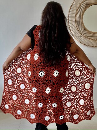 The Sunburst Bohemian Cardi is a versitle card that can be worn in any weather. The cards is created working one motif at a time. The motif is measured 6x9 inches. One of the features that I love is that the cards has uneven borders or rather a zig zag border. I love that everything about this card makes you stand out.