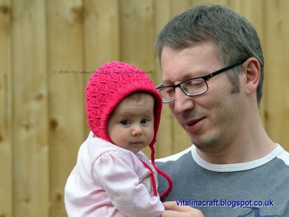 Sundae bonnet is an ideal garment for your little one cool spring/summer days. It is knitted with beautiful textured pattern with DK weight cotton yarn. This design is quick and easy to knit and it is completely seamless. The front of the bonnet is knitted back and forth while the crown is knitted in the round. An attached I-cord ending along neck edge is made between two I-cord ties. My knitting pattern is easy to follow and suitable for beginners. It contains 6 pages of row-by-row instructions, stitch chart and pictures.
