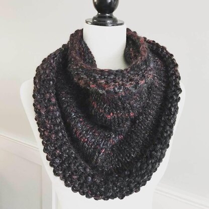This is a versatile cowl that can be worn three ways. It has sublte tapering around the neckline to allow the cowl to fit more snug around the neck and head, and then a broader shoulder size for an oversized look.