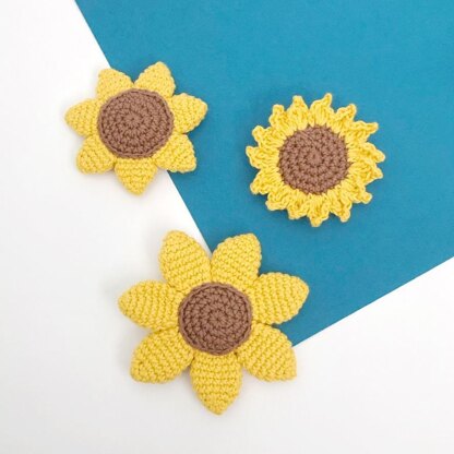 Sunflower 3 is about 2.3 inches (6 cm), but this will vary depending on the size of your yarn and crochet hook.