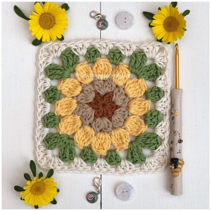 Sunflower Granny Square Crochet Motif for Blankets