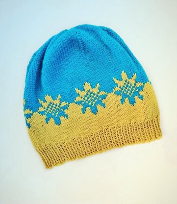 Hat is one size, knitted from bottom up.yarn Sports weight or Light DK gauge 23 sts x 30 rounds = 4" x 4" / 10 x 10 cm