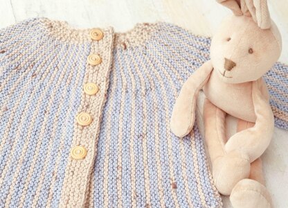 Knitting for babies and children brings joy and is fun to do, especially if it's quick and easy. Sunny Rays Cardigan fits the bill, as an easy to work sideways knit buttoned sweater, that is a lot easier to make than it looks. Delightful rays spread out from the neckline in this two colour cardigan, lending itself to exploring countless colour combinations. Sizes: 0-6 months, 6- 12 months, 1- 2 years, 2-3 years, 3-4 years To fit chests of 41- 46- 51- 56- 61 cm or 16- 18- 20- 22- 24 " About 28- 30- 32- 36- 39 cm or 11- 12- 12 1/2- 14- 15 1/2 " long from neck to hem edge
