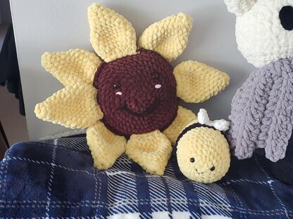 Meet Sunny the Sunflower! this is a super easy and quick make. If you use blanket yarn it'll end up as the size of a giant pillow! or use baby velvet and make a small squish. the opportunities are endless! Supplies