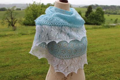 This shawl brings you the blue summer sky with "feathery curtains stretching o'er the sun's bright couch". (Percy Bysshe Shelley) Choose other colors and watch your project turn into... a spring meadow with blooming flowers... a Japanese cherry orchard... just use your imagination and your shawl will tell its own story.