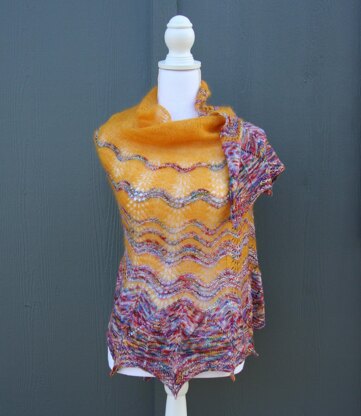 Standing in the predawn of the morning, facing east, the sun peeks over the hills of central Texas, morphing the vast sky from the starspecked darkness to this ombre of navy, purple, pink and gold. Starting with a lush mohair, this pi shawl echos the waves of color and wraps you in a softness that can’t be beat. The weight of merino and silk fingering pulls the shawl around your shoulders and adds just the right amount of warmth that will keep you reaching for this wrap over and over again.
