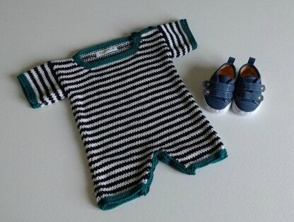 A cute and comfy loose fitting romper for baby boys and girls with either short sleeves and legs or long sleeves and legs. Perfect for all year around wear. Make in cotton yarn for the spring / summer and merino wool for autumn / winter. Buttons at the shoulder and crotch make dressing and nappy changing easy.