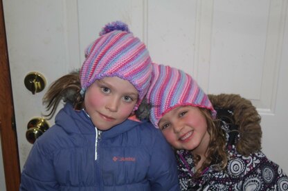 Knit sideways this hat is knit in an 8 row pattern that is all K and P with only one addition, Kfb increases and K2tog on the ends of the rows to form an odd-shaped piece of knitting that when sewn together makes a beautiful swirled hat for young and old. Instructions are easy to follow and making one toque takes a mere hours. Make from any weight of yarn and in any size by just adjusting the height by adding or subtracting the number of cast on stitches. Vary the width of the hat to fit any head circumference by adjusting the number of repeats of the pattern you work. Easy and just darling when topped by a Huge pompom.