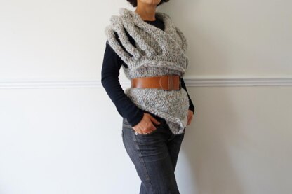 A simple knitting pattern for a versatile vest/wrap made of super chunky yarn. This reversible vest can be a large ribbed collar vest wear or a simple collar vest wear with the larger ribbed side down. Designed for bulky yarn, this wrap is easy to make, perfect pattern for a beginner knitter.