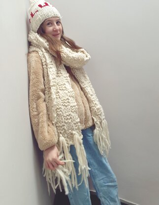 This super chunky scarf pattern is suitable for beginners. It is worked in a simple basket weave pattern, with two layers of tassels added at each end for max impact. The long size is recommend for teens and adults under 1.50cms and those over 1. 50cms tall the extra-long is recommended.