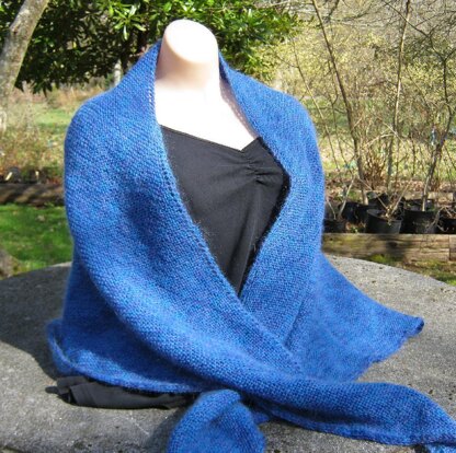 This triangular shaped shawl starts at the top with just a few stitches, and is worked until it is the size wanted – or until you run out of yarn!