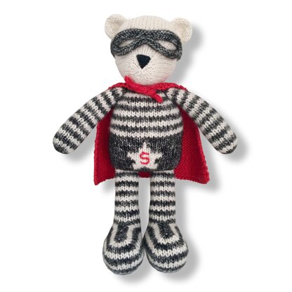 Is it a bird? Is it a plane? No it’s our adorable super hero teddy! Paper-pusher at the honey factory by day, brave crime fighter by night, this cute character could be knitted up in just a few evenings. He’s made from simple st st, garter st and a few straightforward increases and decreases.