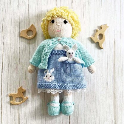 Susie doll stands around 36cm (14 inches) tall and comes complete with the pattern for her dress, blouse, cardigan, shoes and even a little bunny!