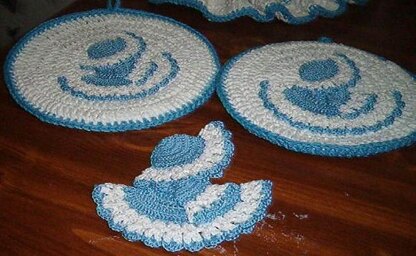 | One size only: | potholders approx 7 inches dia- magnet approx 3 inches high |