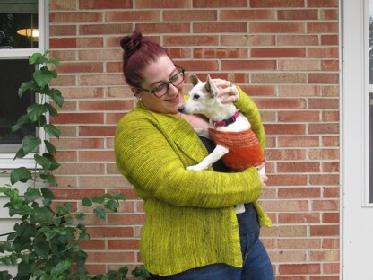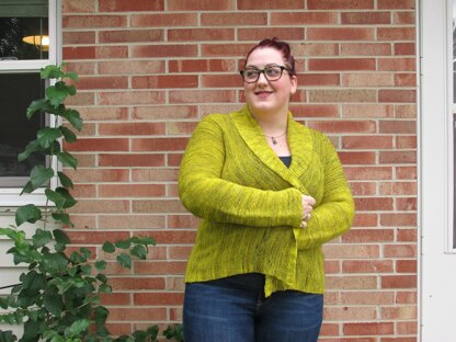 The sleeves and body are worked sideways, casting on at one wrist and working across the body before binding off at the opposite wrist. Stitches are then picked up and the shawl collar is knit on. The sides and sleeves are then closed with just two seams to finish.