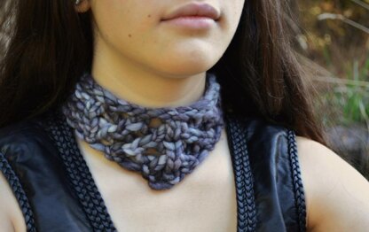This choker is part of a collection called Shieldmaiden Knits, featuring designs in Malabrigo Yarn, inspired by the epic Viking style.