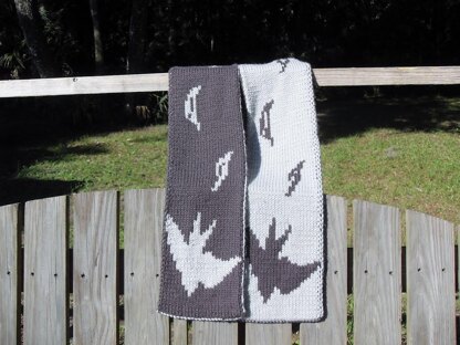 The Swallow Breeze scarf features two swallows flying through floating leaves. This is a double knit scarf aimed for beginning and advanced double knitters alike! This pattern requires only a few color changes per row, making it great for those who want to try a simpler double knit pattern.