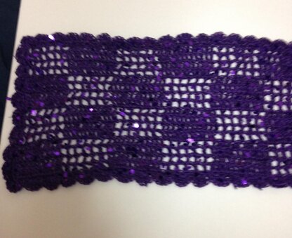 This wrap is easy to crochet in a filet style mesh pattern. It is made with Red Heart Boutique Swanky yarn which gives it a touch of sparkle, making it suitable for dressy occasions or casual use. If you want to make it bigger it can easily be adjusted by adding an extra repeat , but you will need an extra skein if you make it bigger.