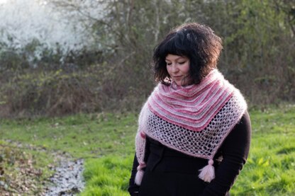 Sway is a beautiful shawl that starts at the top in the centre, expanding into triangular shape and ending with gentle lace. The way the shawl is worked causes the centre of the shawl to sway, hence the name. The whole triangular goodness is finished off with playful tassels.