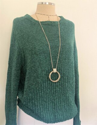 This beautiful sweater is worked seamless from the top down with contiguous shoulder construction. Worked flat first then joined at the front neckline and finished, knitted in the round to underarm. Sleeves are separated out and body is finished in the round to hemline. Sleeves are worked in the round. Neckband is finished last. A subtle rib completes this classic garment. The decreased Rib section is along the front and the back.