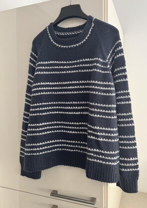This sweater is worked seamless from the top down. The garment is worked flat first, then joined at the neckline and finished in the round to underarm. Body and Sleeves are separated, body is finished in the round.