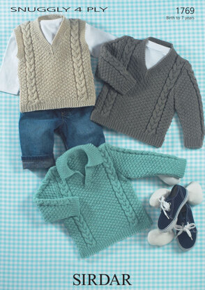 Sweaters and Slipover in Sirdar Snuggly 4 ply 50g - 1769 - Downloadable PDF is a Knitting pattern by Sirdar, available as a Downloadable PDF and includes instructions in English. Super fun to make, this pattern could be your next masterpiece!