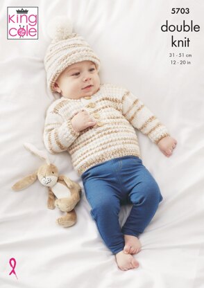 Sweaters, Waistcoat, Hat and Mittens Knitted in King Cole DK - 5703 - Downloadable PDF is a Intermediate Knitting pattern by King Cole, available as a Downloadable PDF and includes instructions in English. Super fun to make, this pattern could be your next masterpiece!