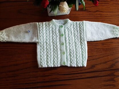 Measurements: to fit ages 0-6 months (6-12 months). Actual chest measurement of cardigan: 50(53) cm.