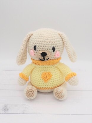 Sweet Doggie is 7” tall (When using a E hook (3.50mm) and worsted weight yarn) You can use any size yarn and hook to change the size