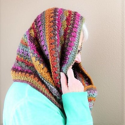 This crochet pattern for a self-striping hooded cowl is full of interest with texture, color, and softness and can be worn as an infinity scarf or as a head wrap. Elegant enough for evening, but comfy and warm enough for every day, this hooded cowl is called Sweet Harmony because of the soothing touch and delightful design of this self-striping yarn. You can use your favorite self-striping yarn to make this beauty or go for a more subtle charm with a soft solid. It's all up to you!