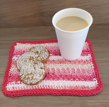 Using the Tunisian Crochet Honeycomb Stitch, make some cute mug rugs all in one color or by using a different color for the border.