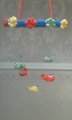 This is my Sweet Little Fishes mobile - it is relatively easy to make and using bright primary colours is a lovely accessory in a baby's room. I have received many compliments and my children just love it. It is so enjoyable to make.