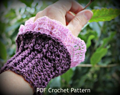 There is about 75yds Dk weight yarn & 150 - 180yds lace weight yarn needed to complete two cuffs.