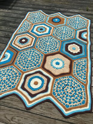 Full size afghan, motif style, rectangular in shape, intermediate level crocheters will have no problem (post stitches, clusters); adventurous beginners welcome.