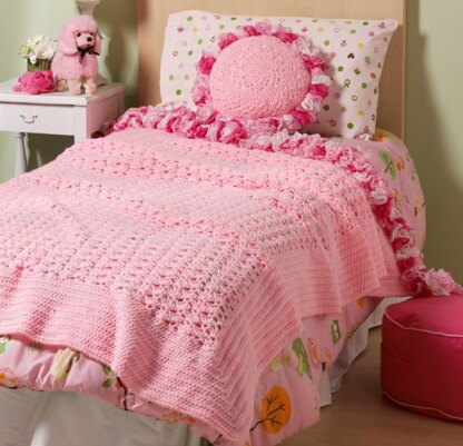 Sweet Ruffles Blanket & Pillow in Red Heart Super Saver Jumbo Solids - LW4116