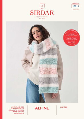 With a simple stripe design, this generous scarf is suitable for beginners to knit a cosy winter accessory in no time. Knitted in soft, fluffy Sirdar Alpine for a beautiful fur effect.