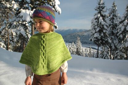 Sweet Tart Poncho pattern is written in a plethora of sizes from baby to adult large. It is knit in the round from the top down, and all measurements are given in US and metric. Instructions for the cable panel are written and charted for personal preference.