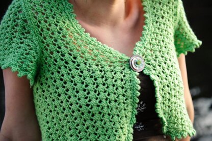 An airy sweater that lets in the sunshine of the South, the Sweet Tea Shrug will become your go-to warm weather cardigan. It’s worked from the bottom up with set-in sleeves and you’ll memorize the lace repeat quickly. Dainty picot edging provides a delicate finish. Pattern includes 8 sizes; lace work is charted. Full schematic included.