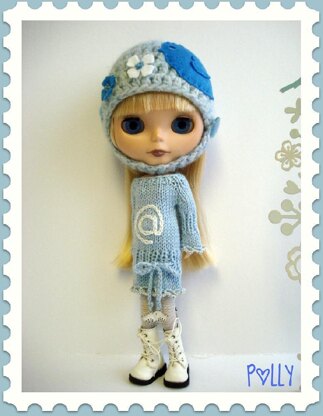 This is my own pattern that fits 12″ Blythe dolls. A sweet little sweater dress with ribbed accents that give it a fitted look. Crochet edges can be worked if wanted. A little crocheted tie at the hips adds to its charm! I worked some chain stitch embroidery on these dresses as part of my Sweet Tweets collection. You could add any sort of embellishment to make it your own :) You will need 2.75mm needles and 4 ply yarn (UK) some sock wools would work nice too.