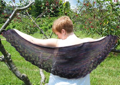 The border crossing I take when I visit home in Alberta is at Sweetgrass, Montana, home of the Sweetgrass Hills, which rise from the surrounding sweetgrass covered prairie. The lace border is worked first, then the short-row body; then a simple garter edging.