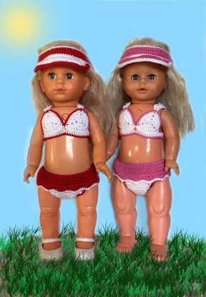 Crochet Pattern 3 Pieces Set : Top, Bikini And Hat for 18'' doll (also fits 16'' doll size)