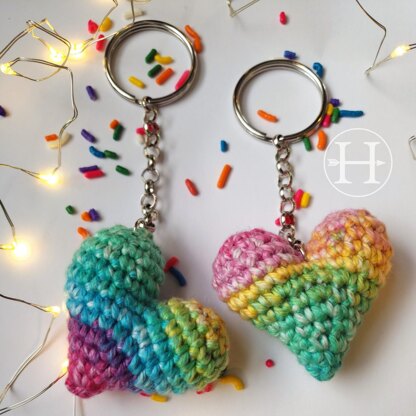 This pattern is for a mini puffy heart keychain.
