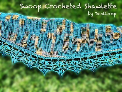 Swoop is one of those designs that kept playing in my head and I just had to realize it. My first try at the idea was with different stitches but it did not work out as intended. I did like the body pattern but the border did not work. This version is my second try and it seems perfect. The body is made lengthwise and later a border is added in the usual widthwise direction. The stitches are very easy and I am sure this shawlette would be a go-to piece in everyone’s closet. The choice of yarn can make a lot of difference in transforming this shawlette from simple to posh.