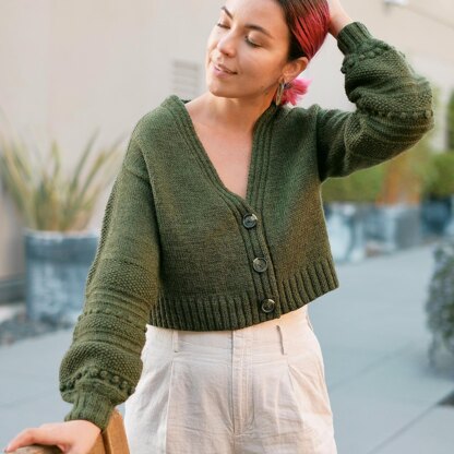 Inspired by the beauty of Californian sycamores, this cardigan is similarly simple, but stands out thanks to its textured details. Wide sleeves, straight lines and a bit of positive ease make this sweater a great layering piece, while fitted cuffs and worsted weight yarn will keep the wearer warm and cozy.