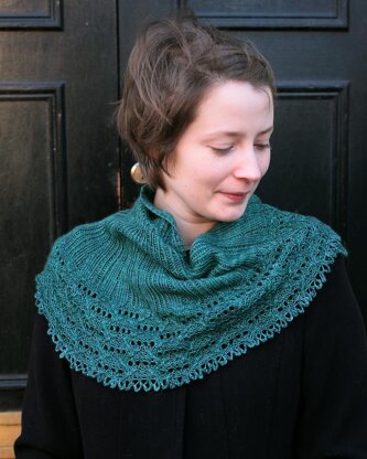 Construction Semi-circular shaped, beginning with a garter tab at the centre top, increasing as you knit down toward the lace border.