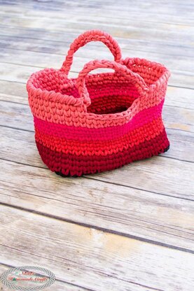 This t-shirt yarn bag was made with 5 different colored t-shirt yarn balls by Hoooked. It's easy and stylish and the perfect WIP project bag.